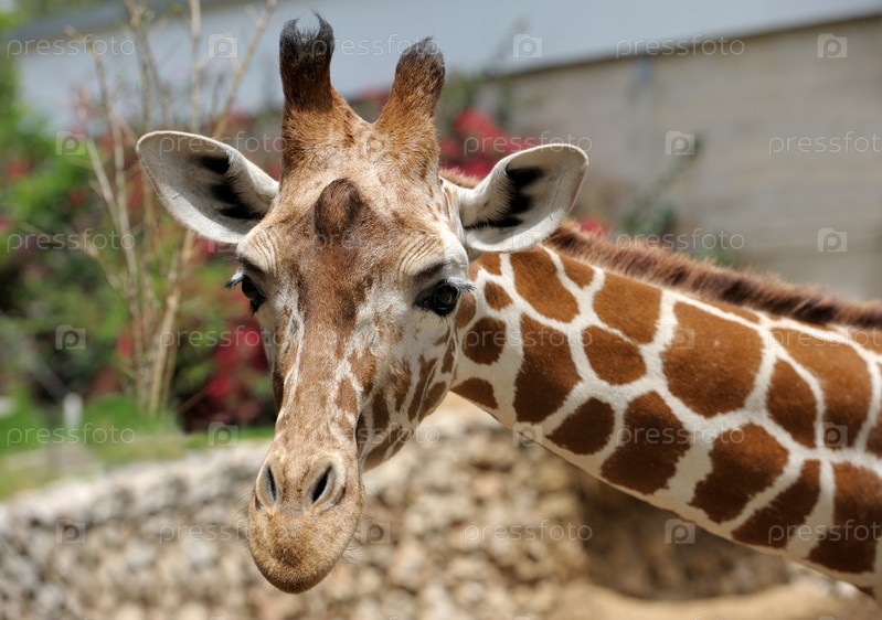 Жираф в зоопарке, крупные планы головы