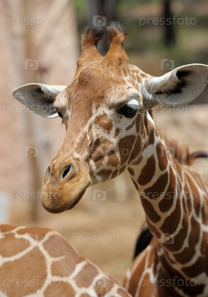 Жираф в зоопарке, крупные планы головы