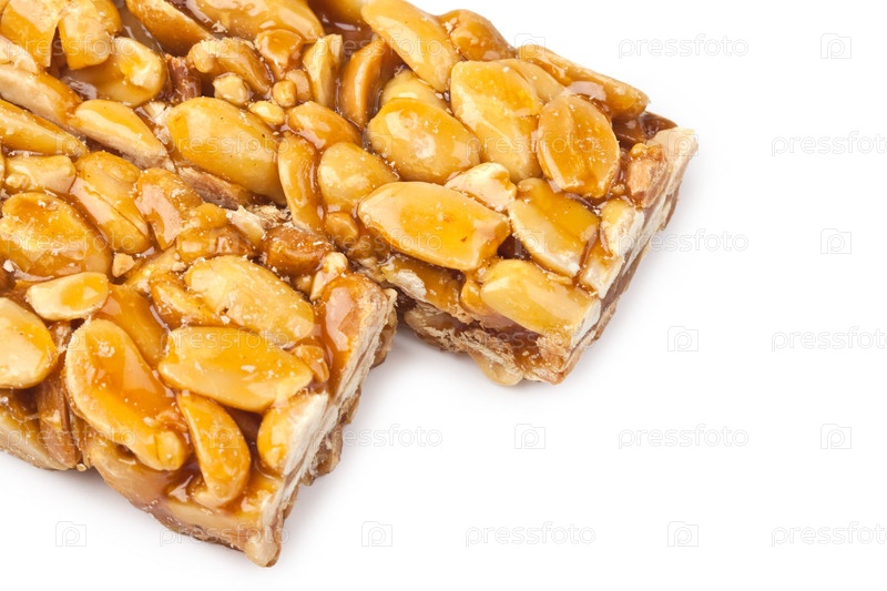 Арахис в меду на белом фоне
