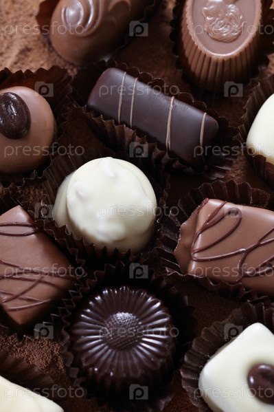 Различные шоколадные конфеты крупным планом