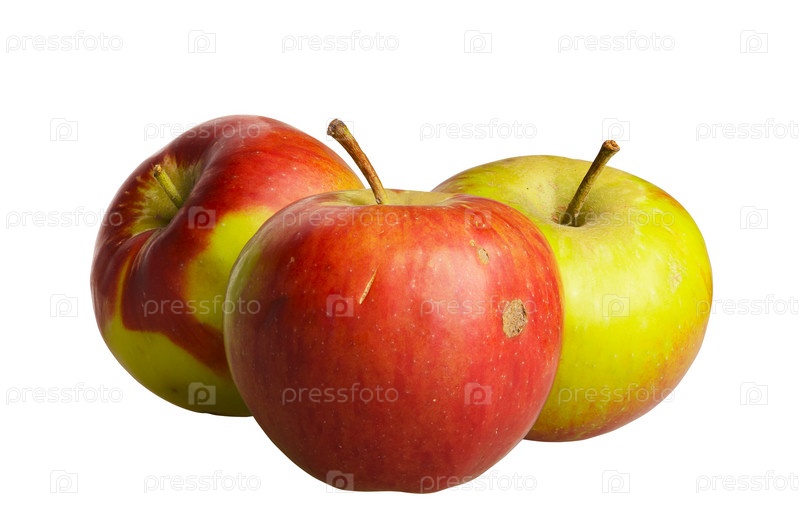 Три спелых яблока на белом фоне