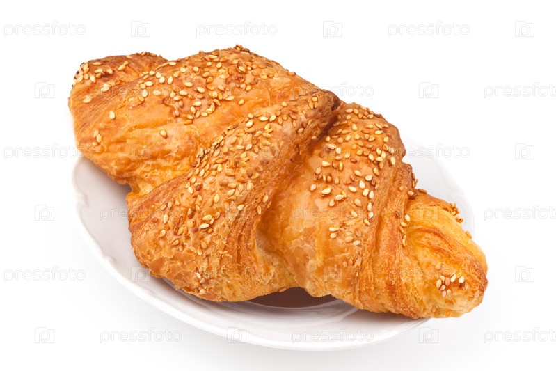 Круассан с кунжутом на белом фоне