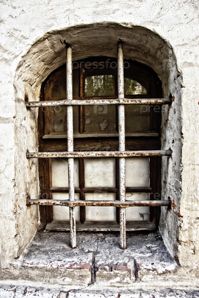 Окно старого дома с решеткой