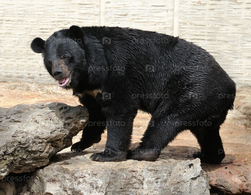 Большой медведь с черным мехом в зоопарке