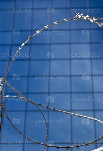 Колючая проволока на фоне офисного здания