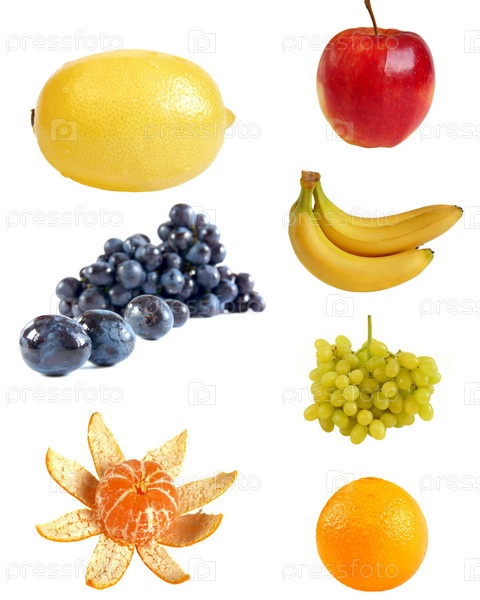 Различные фрукты на белом фоне