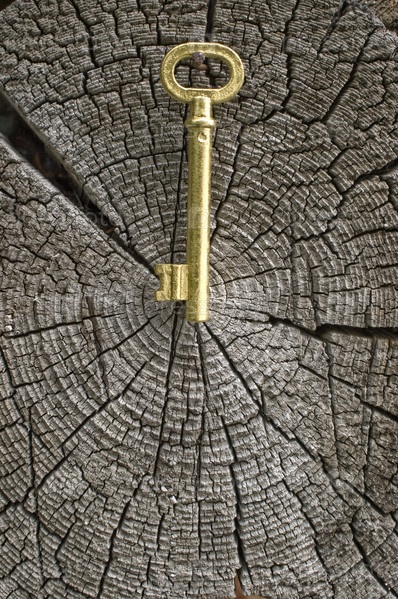 Золотой ключ на фоне старого дерева