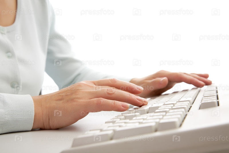 Женщина печатает на клавиатуре, крупный план
