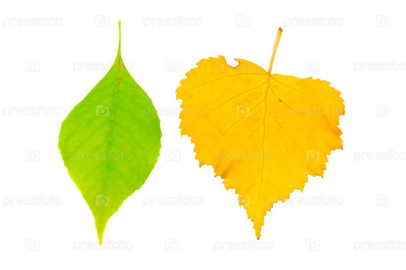 Два осенних листка на белом фоне