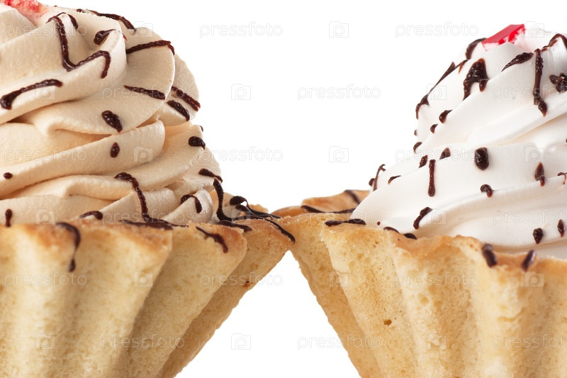 Пирожные со взбитыми сливками на белом фоне