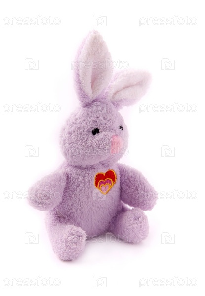 Детский плюшевый заяц на белом фоне