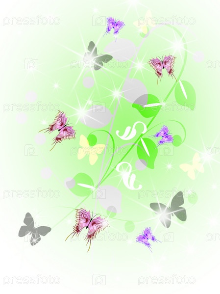 Бабочки на белом фоне с листьями