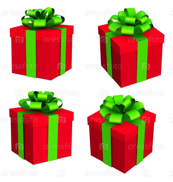 Четыре подарочных ящика на белом фоне, 3d