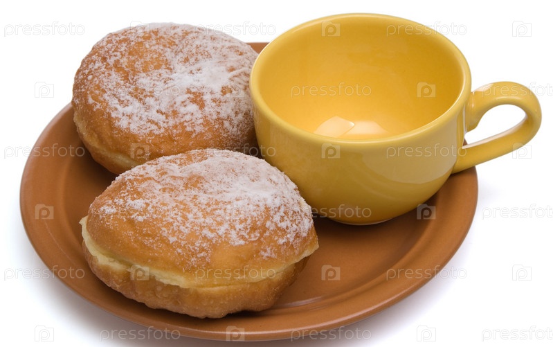 Сладкая выпечка и чашка