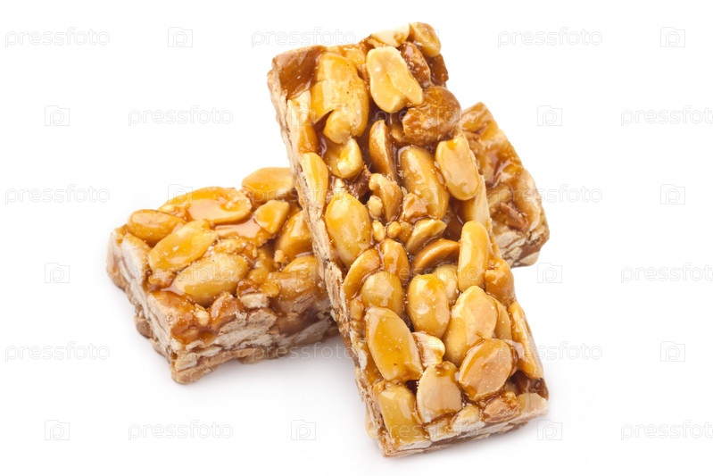 Медовые палочки с арахисом на белом фоне