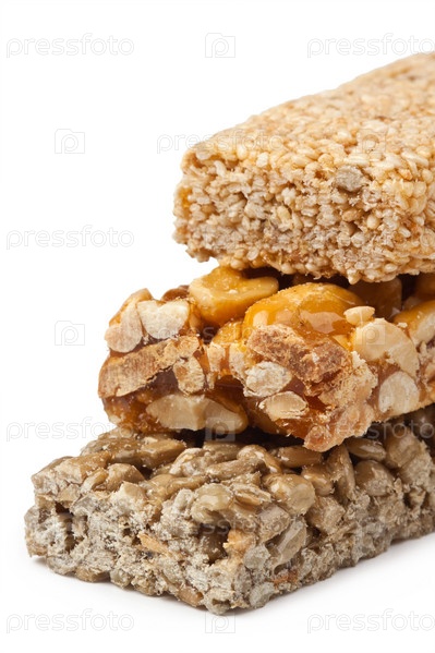 Медовые палочки с арахисом на белом фоне