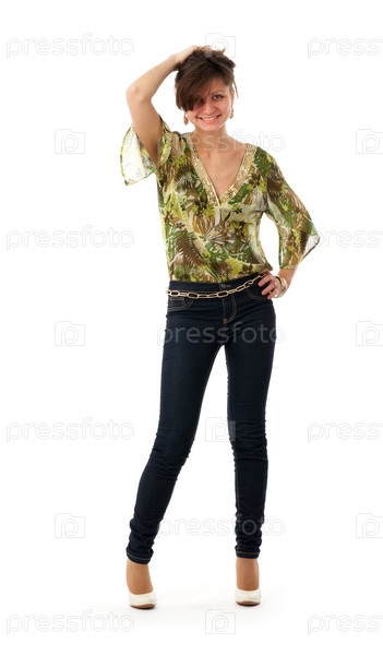 Портрет молодой позирующей девушки в полный рост