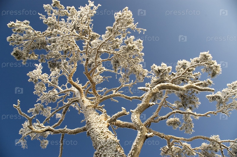 Дерево в снегу на фоне неба