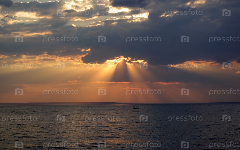 Солнечные лучи пробиваются сквозь облака над морем