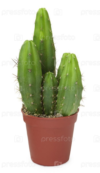 Кактусы в коричневом горшке, изолированном на белом фоне