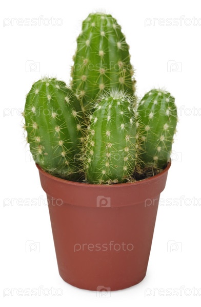 Кактус в горшке на белом фоне