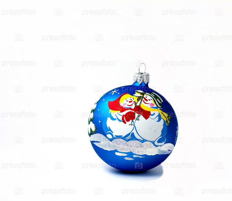 Новогодний шарик синего цвета на белом фоне