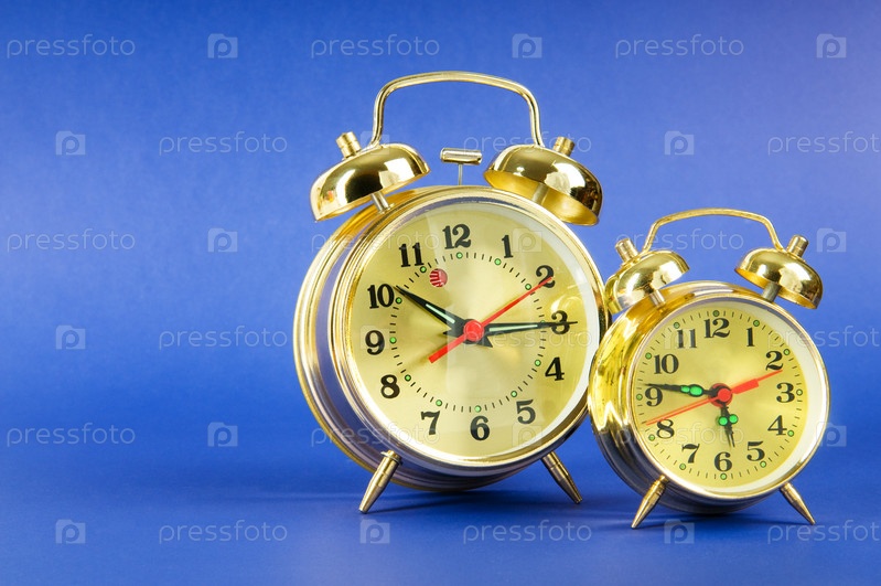 Будильники на синем фоне