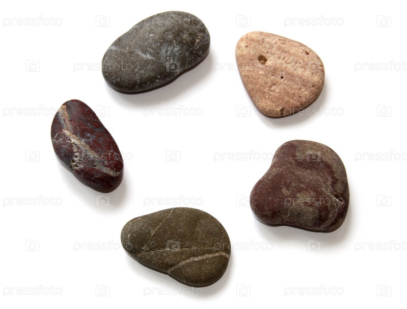 Пять камней, выложенных по кругу на белом фоне