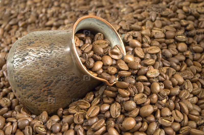 Турка на фоне кофейных зерен