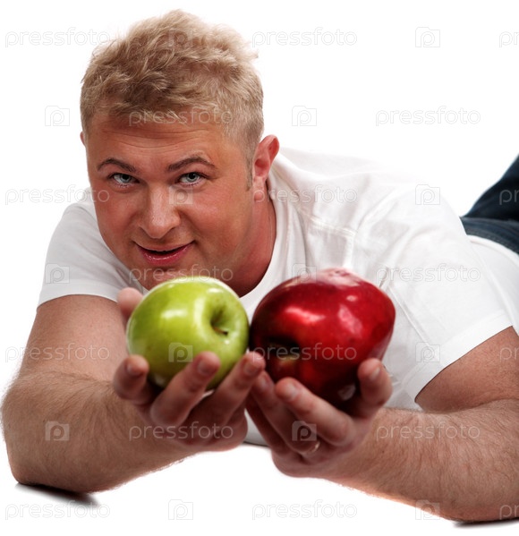 Взрослый мужчина с двумя яблоками