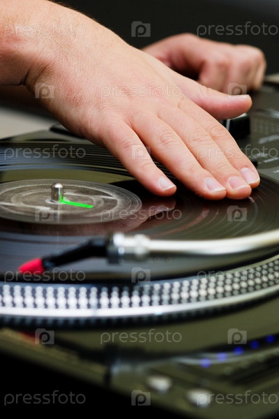 Руки диск-жокея на вертушке