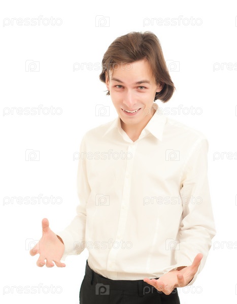 Веселый молодой мужчина на белом фоне
