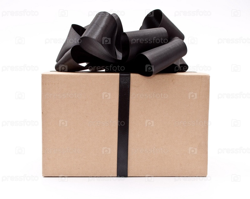 Коробка с черным бантом на белом фоне