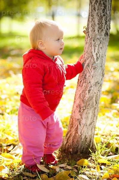 Маленький ребенок, стоящий рядом с деревом