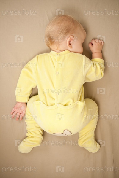 Спящий маленький ребенок на бежевом фоне