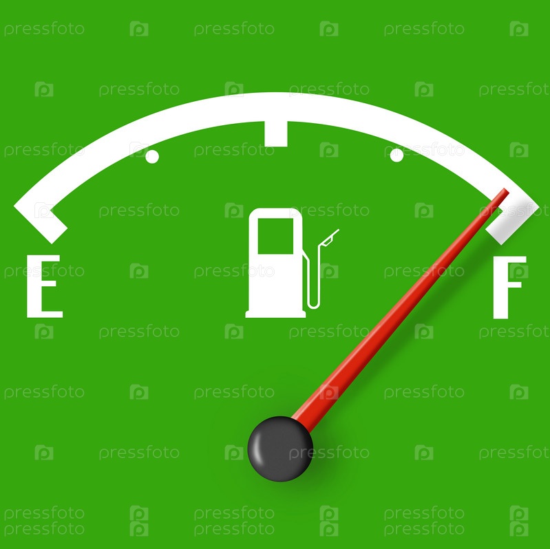 Полный топливный бак - знак с красным индикатором, изолированный на зеленом фоне