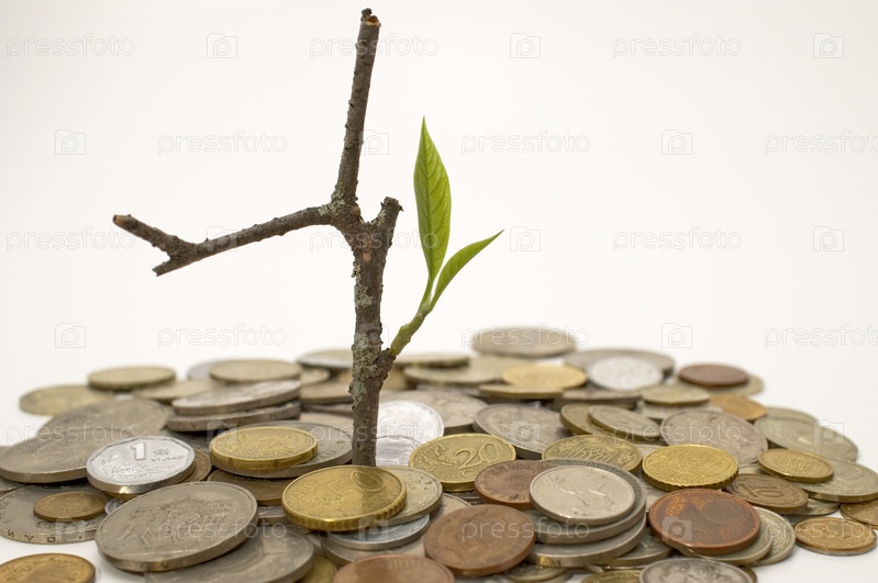Деревце растет из кучи монет