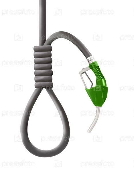 Зеленый пистолет от топливного насоса с петлей из шланга в форме виселицы, изолированный на белом