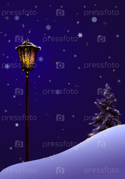 Рождественская иллюстрация с уличным фонарем