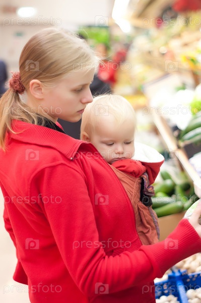 Мать, гуляющая с маленькой дочкой в магазине