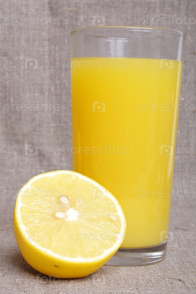 Стакан лимонного сока с половинкой лимона