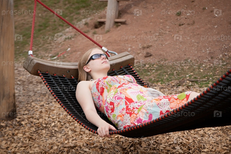 Молодая беременная женщина, лежащая в гамаке на открытом воздухе