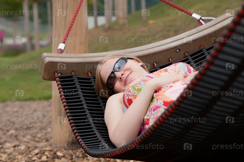 Молодая беременная женщина, лежащая в гамаке на открытом воздухе
