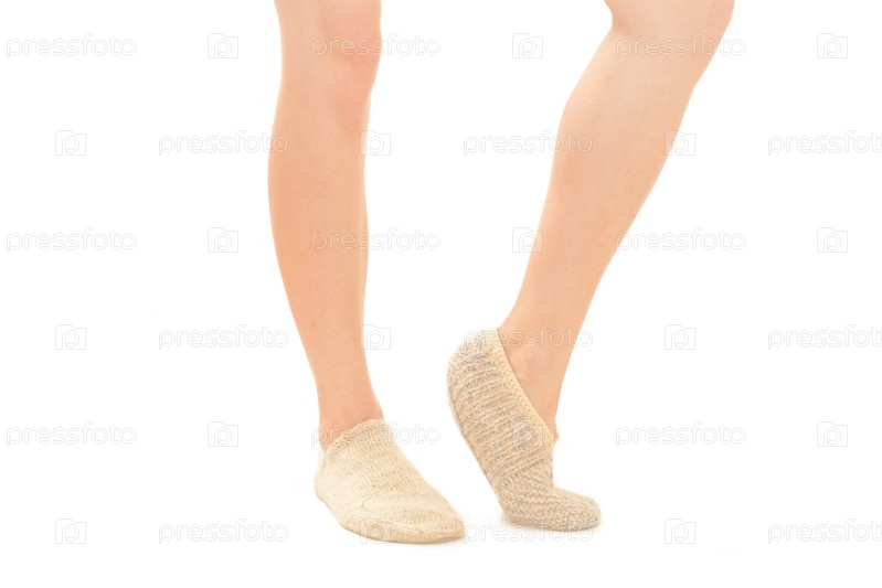 Ноги в шерстяных носках на белом фоне