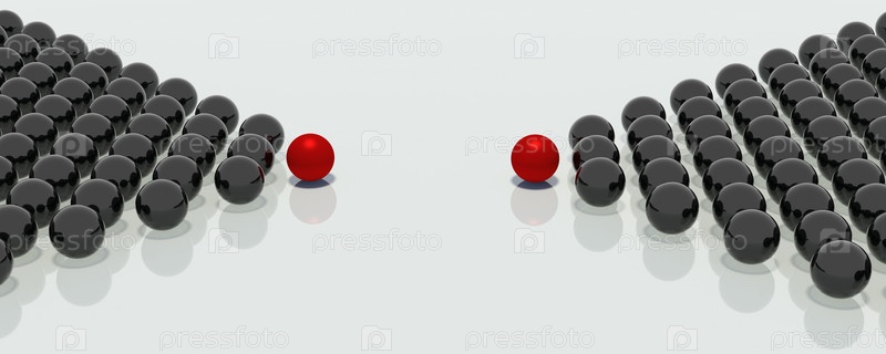 Две группы шаров, сложенных в форме стрелки, направлены в одну точку