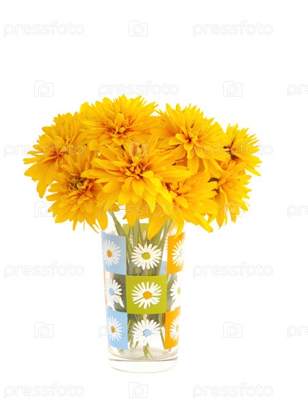 Желтые цветы в вазе на белом фоне