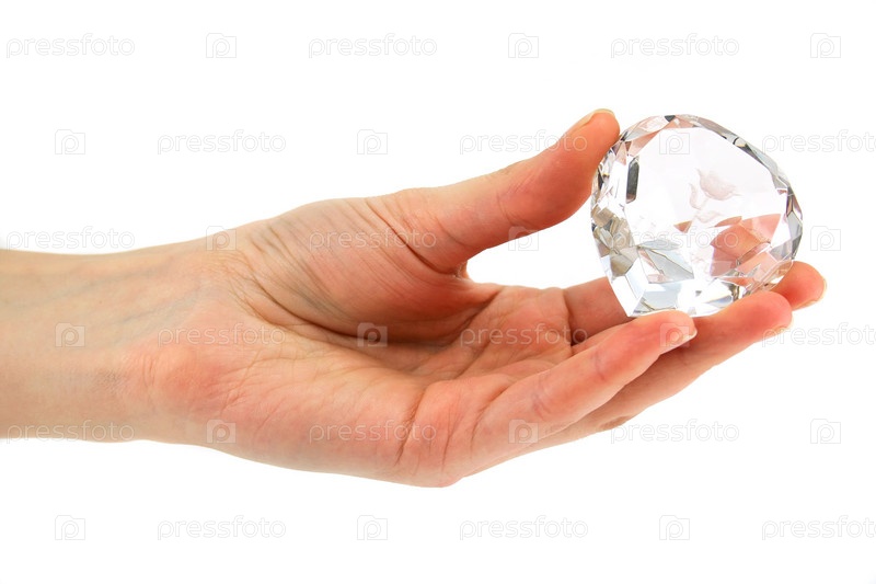 Женская рука держит кристалл с декларацией любви изолированный