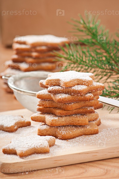 Домашнее рождественское печенье с сахарной пудрой