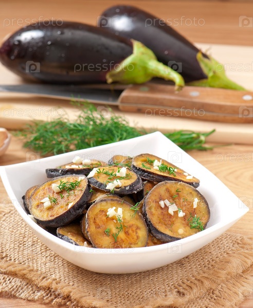 Жареные баклажаны с чесноком и укропом