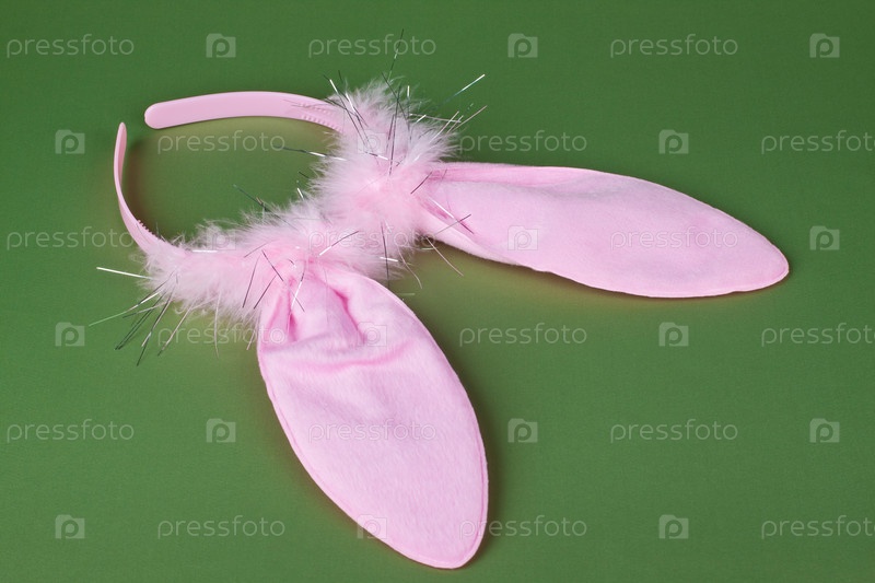 Розовые заячьи уши на зеленом фоне